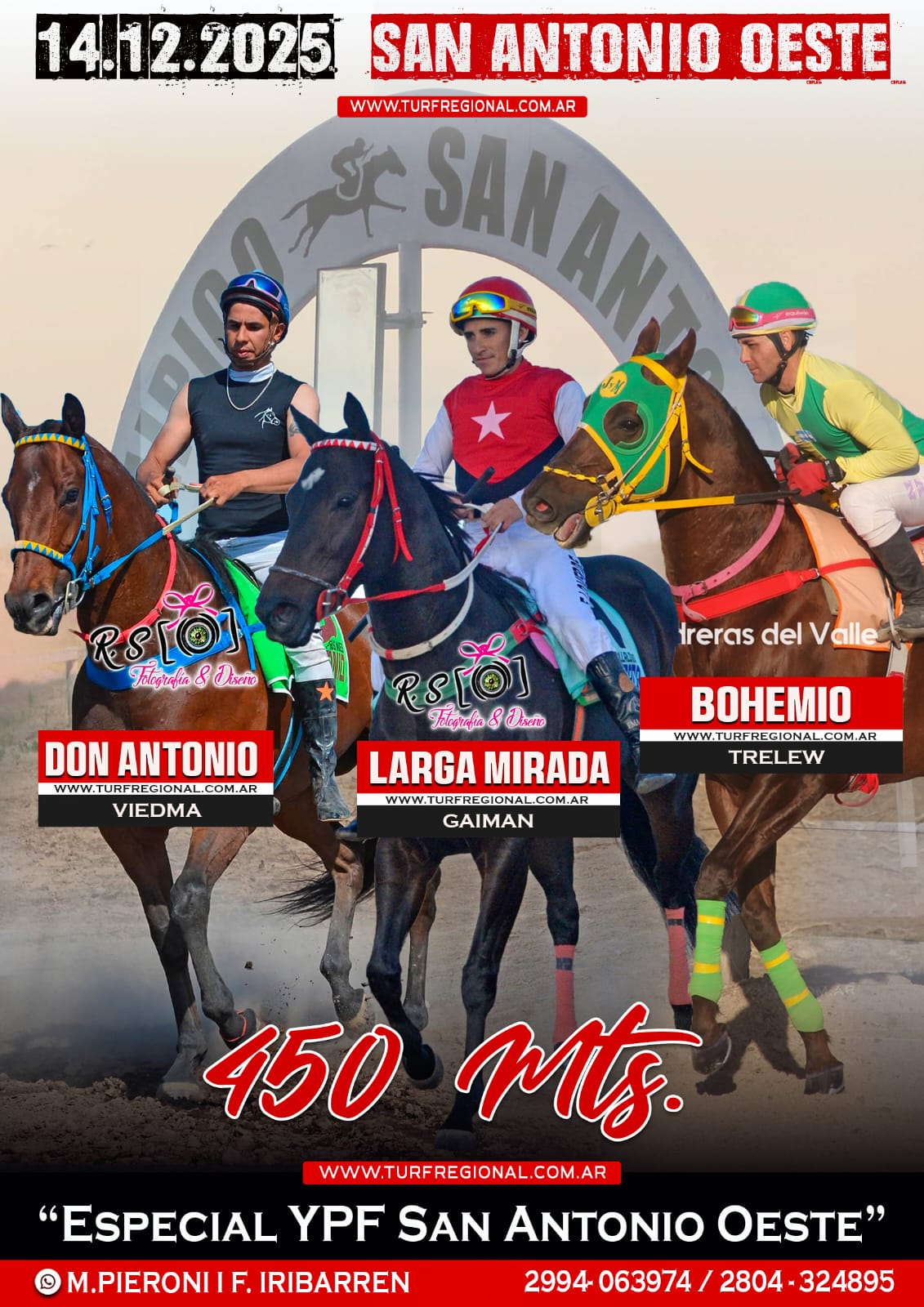 14 de diciembre Gran jornada de turf en San Antonio Oeste. Con la entrada importantes premios