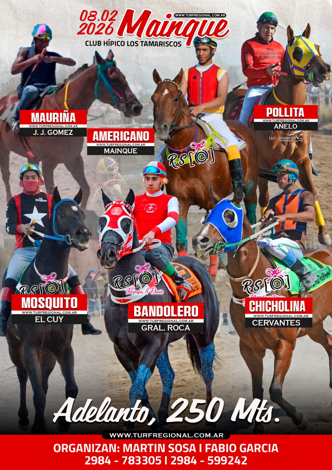 El Club Hípico “Los Tamariscos” de Mainque, Río Negro se prepara para la primera jornada de la temporada 2026 el día domingo 8 de febrero. El programa a cargo de Martin Sosa y Fabio Garcia ya tiene varios Adelantos confirmados. Info ingresando a la nota. CONTACTO: 2984 – 783305 I 2984 – 599242