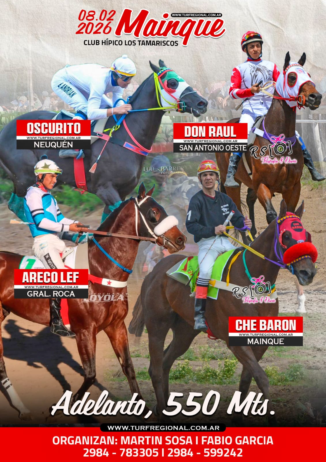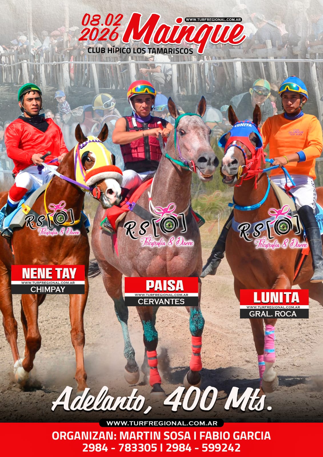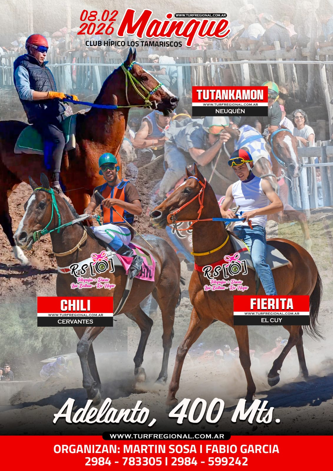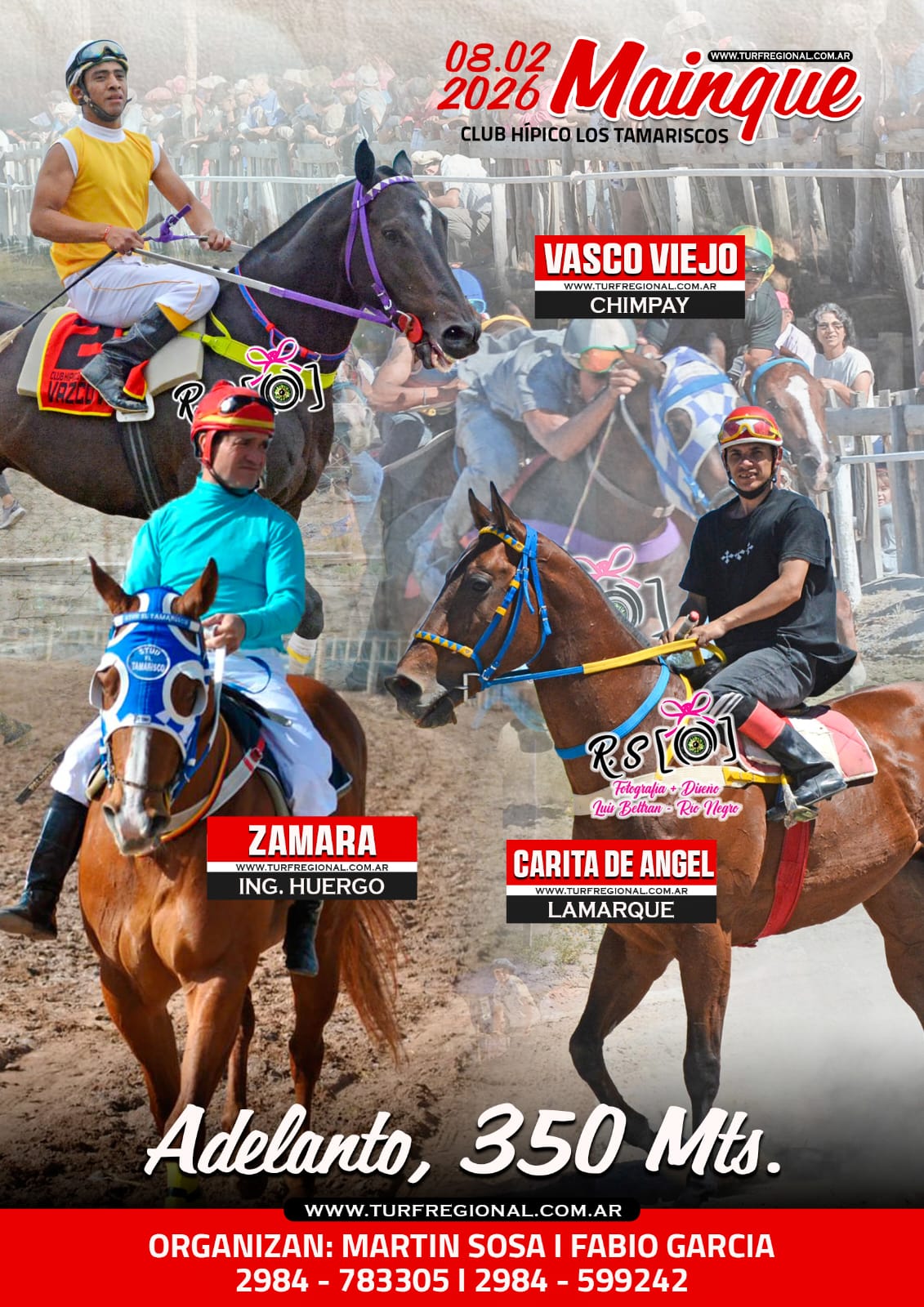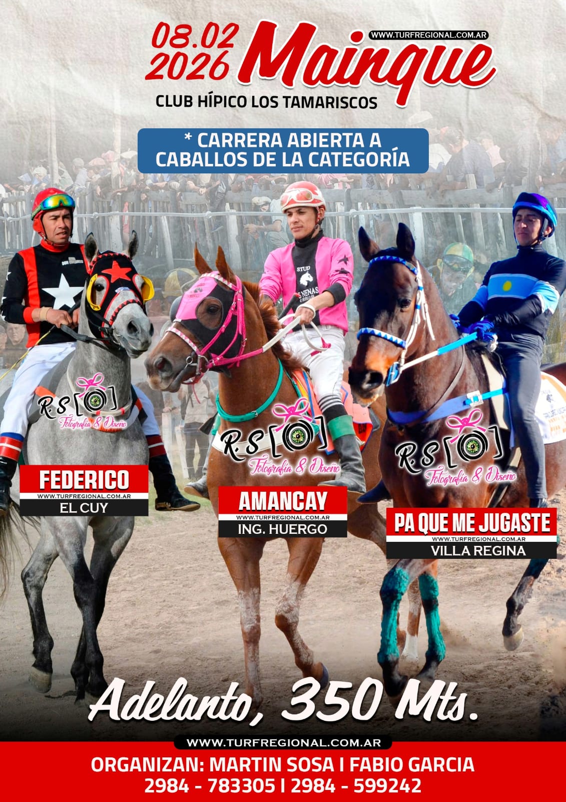 El Club Hípico “Los Tamariscos” de Mainque, Río Negro se prepara para la primera jornada de la temporada 2026 el día domingo 8 de febrero. El programa a cargo de Martin Sosa y Fabio Garcia ya tiene varios Adelantos confirmados. Info ingresando a la nota. CONTACTO: 2984 – 783305 I 2984 – 599242