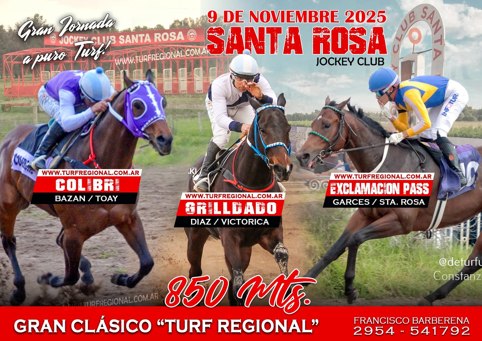 Este domingo 9 de noviembre se disputará una nueva fecha en el calendario 2025 del hipódromo de la capital pampeana. Bajo la organización de Francisco Barberena la jornada ya tiene tres pruebas centrales confirmadas: el Clásico “Turf Regional” sobre los 850 metros en donde se enfrentarán COLIBRI, GRILLDADO Y EXCLAMACION PASS, el Especial “Turf Pampeano” y el Clásico “Todos a la Foto”. Ingresando a la nota los adelantos.