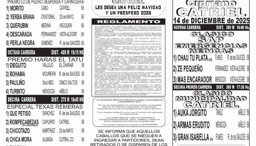Read MoreNos Hackearon… el “Crupier” del turf regional volvió a repartir el mejor naipe al Cipriano Catriel y al Stud El Sauce
