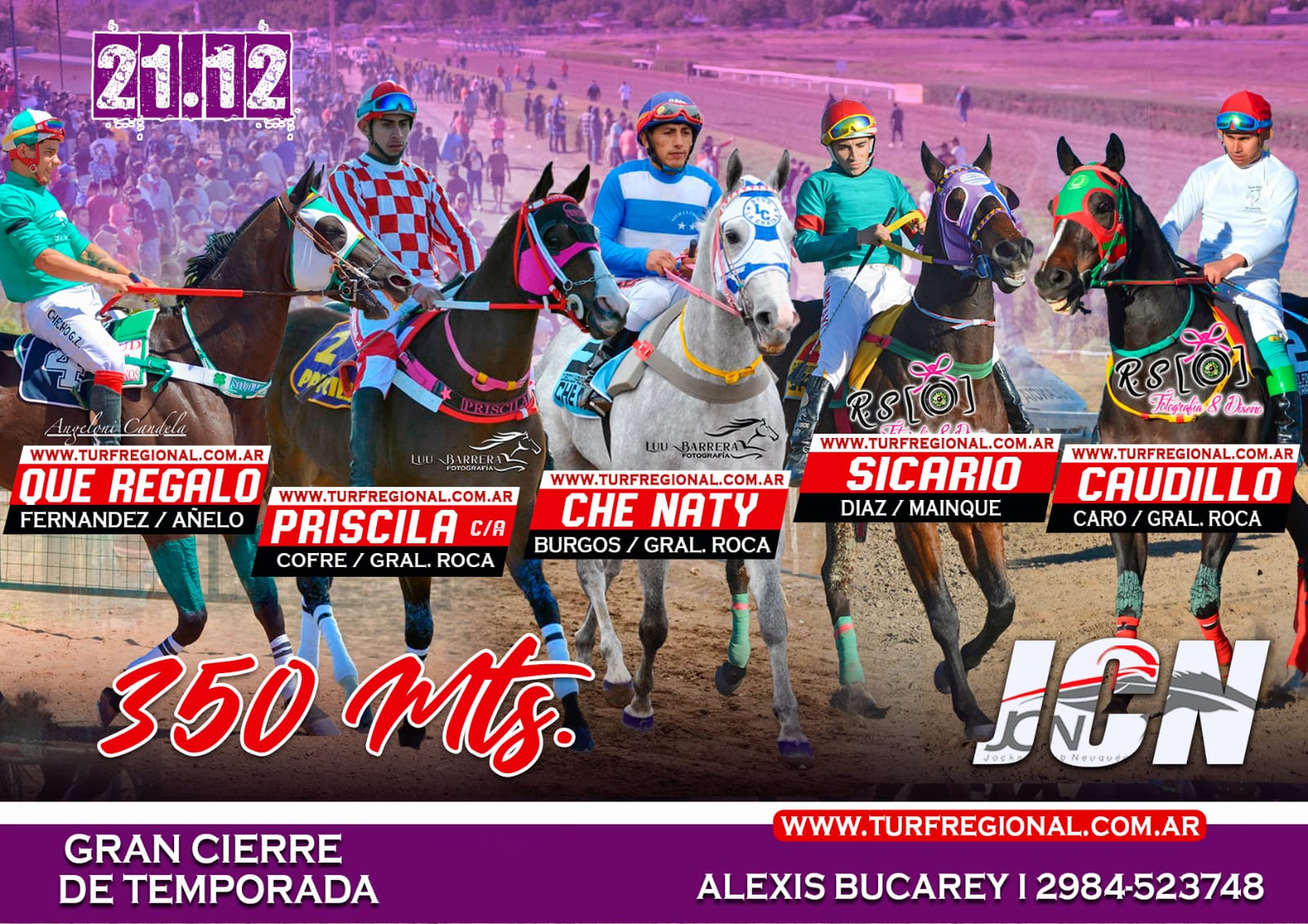 El domingo 21 de diciembre se corre en el Hipódromo de Neuquén la última del calendario. La prueba central será el Clásico Clausura sobre los 1400 metros y varios especiales confirmados para dar fin a una exitosa temporada 2025. En la organizacion Alexis Bucarey.