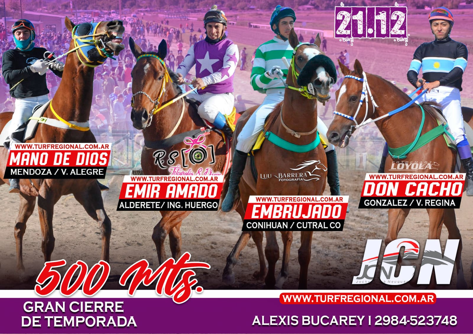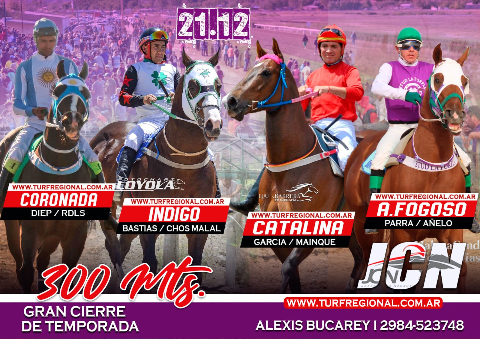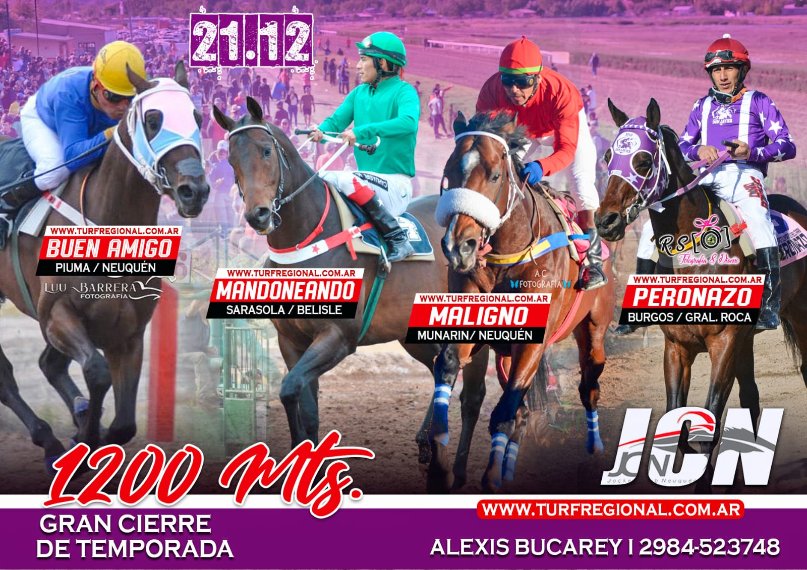 El domingo 21 de diciembre se corre en el Hipódromo de Neuquén la última del calendario. La prueba central será el Clásico Clausura sobre los 1400 metros y varios especiales confirmados para dar fin a una exitosa temporada 2025. En la organizacion Alexis Bucarey.