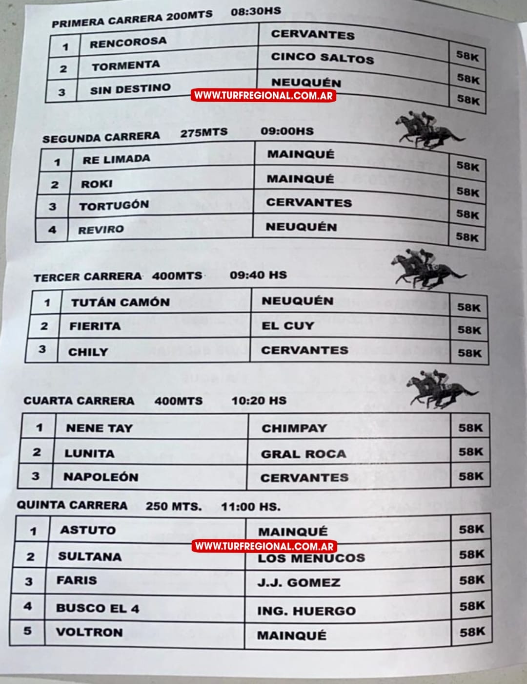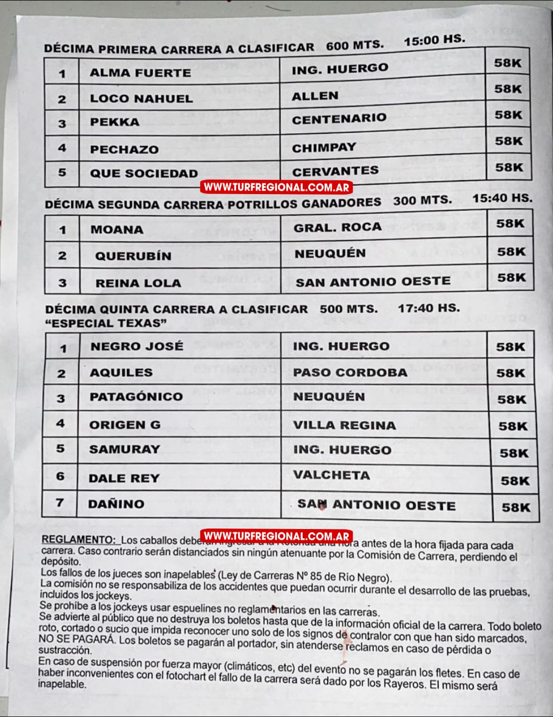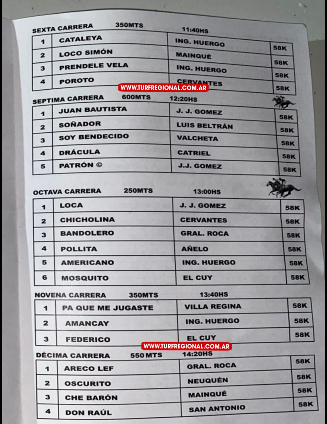 El Club Hípico “Los Tamariscos” de Mainque, Río Negro se prepara para la primera jornada de la temporada 2026 el día domingo 8 de febrero. Te compartimos el programa a cargo de Martin Sosa y Fabio Garcia, la prueba central será el Gran Clásico Velocidad, en donde se enfrentan ARMAS REGENTE, DIABLO BYE y ER DOLAR.