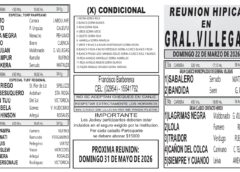 Tercera carrera, Premio Burreros del Sur, distancia 250 metros: 1) MORITO (Cavo/ Catriel) 2) Red Gallant (Aroca/ Neuquén) Jockey: Elias Dezousa