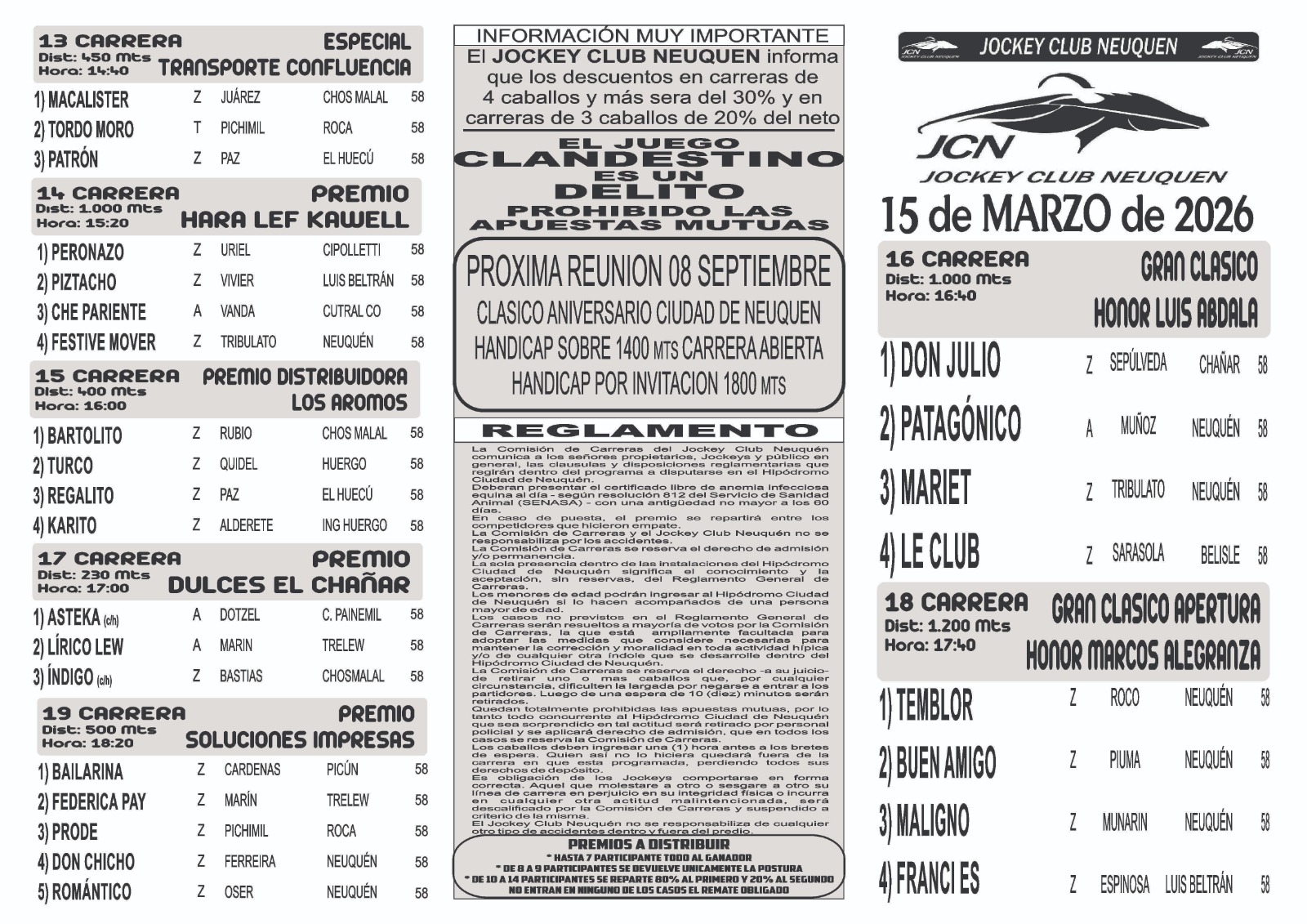 JOCKEY CLUB DE NEUQUEN 15/03/2026 – YouTube