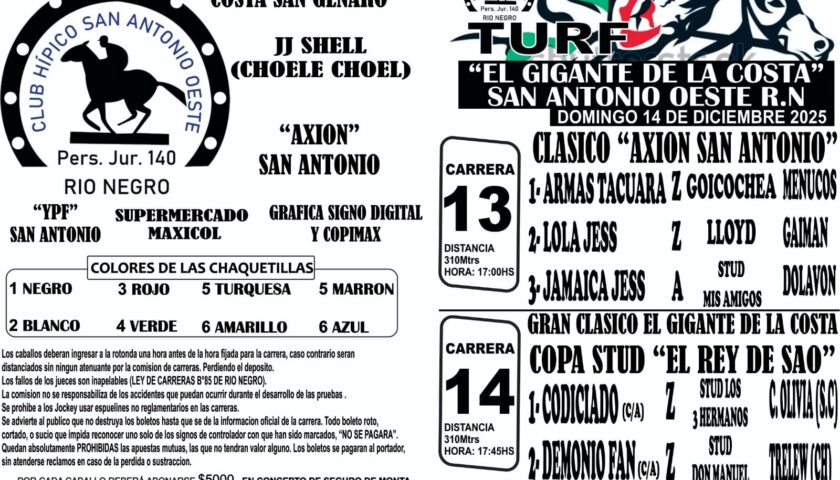 Read MoreClásico confirmado para el 5 de diciembre en el Hipódromo de Neuquén